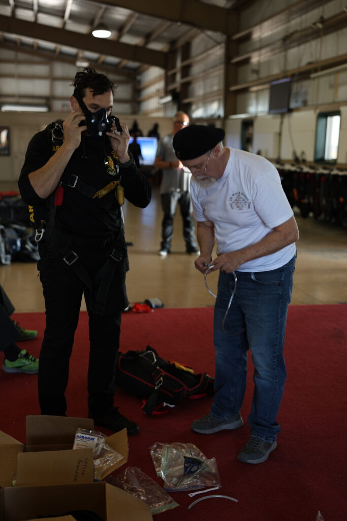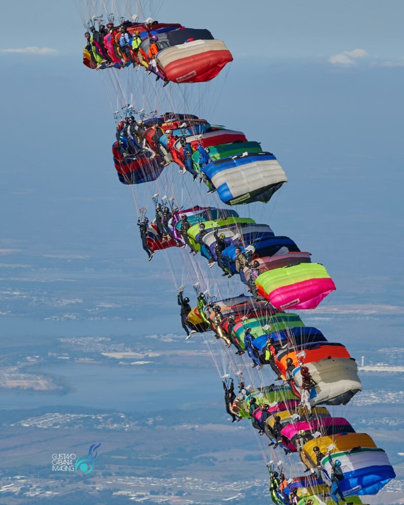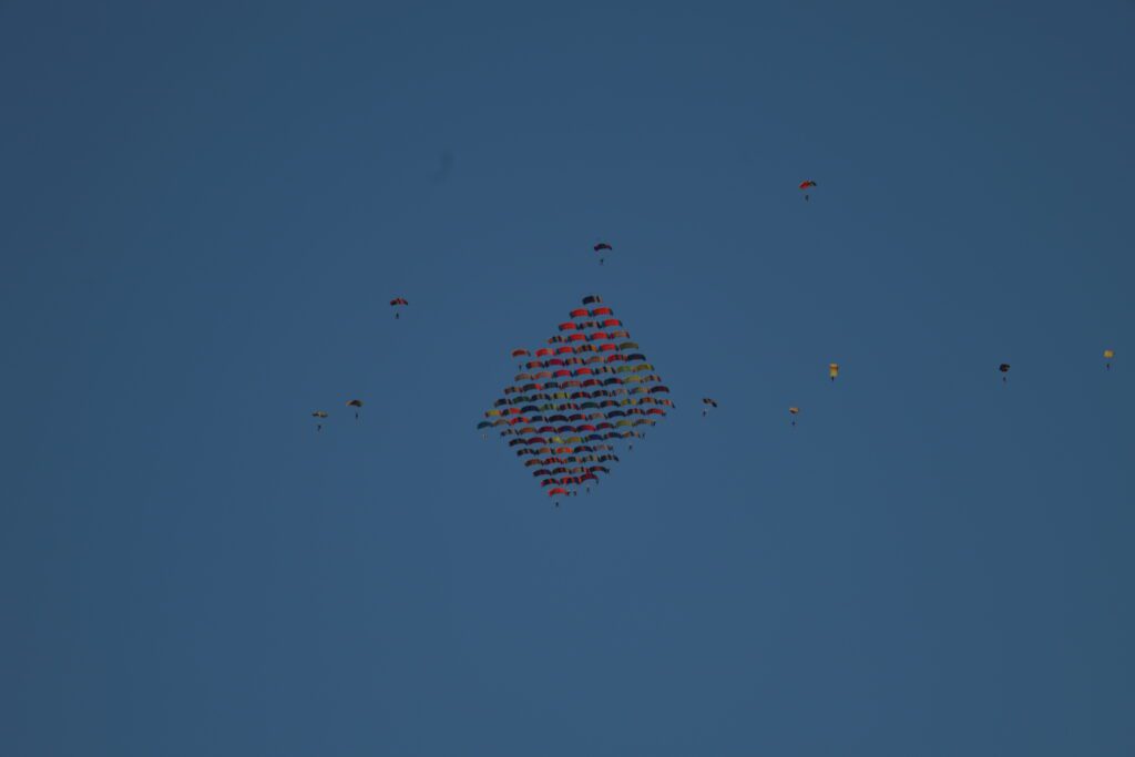 To właśnie ta dziewiątka, ochrzczona pieszczotliwie “ Elephants Squadron” od masek tlenowych, które robiły ich twarze nieco… no, słoniowe, ale też od wielkości spadochronów, największych z całej formacji, które dźwigali na plecach. Baza w kolorze pomarańczowym stała się sercem i kręgosłupem rekordu.