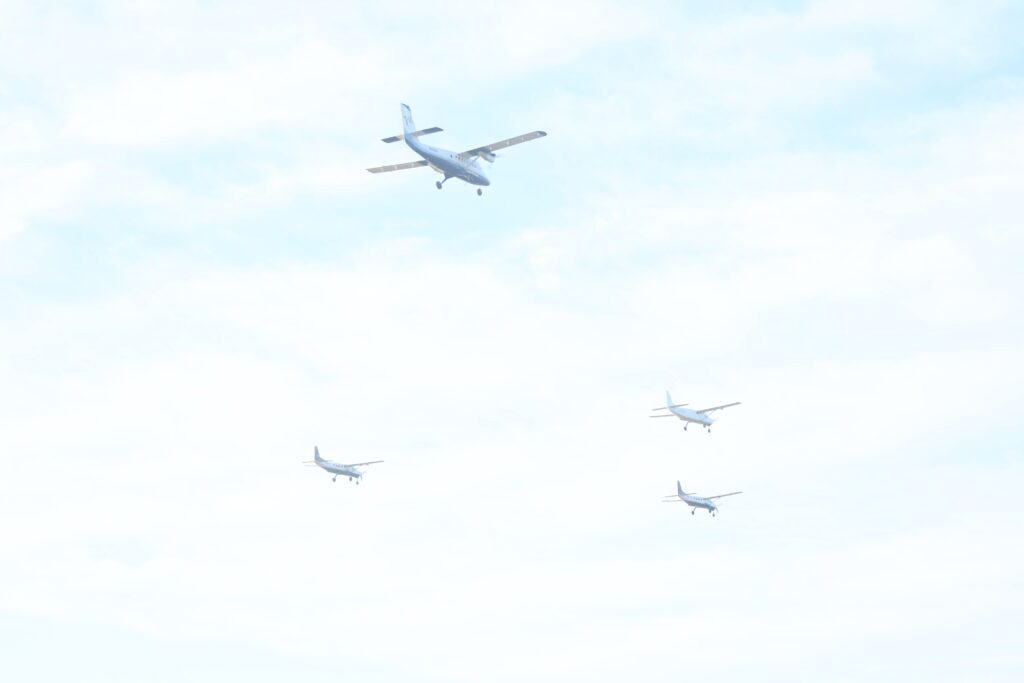 Gdy osiem samolotów wyrównało szyk, niebo było czyste.