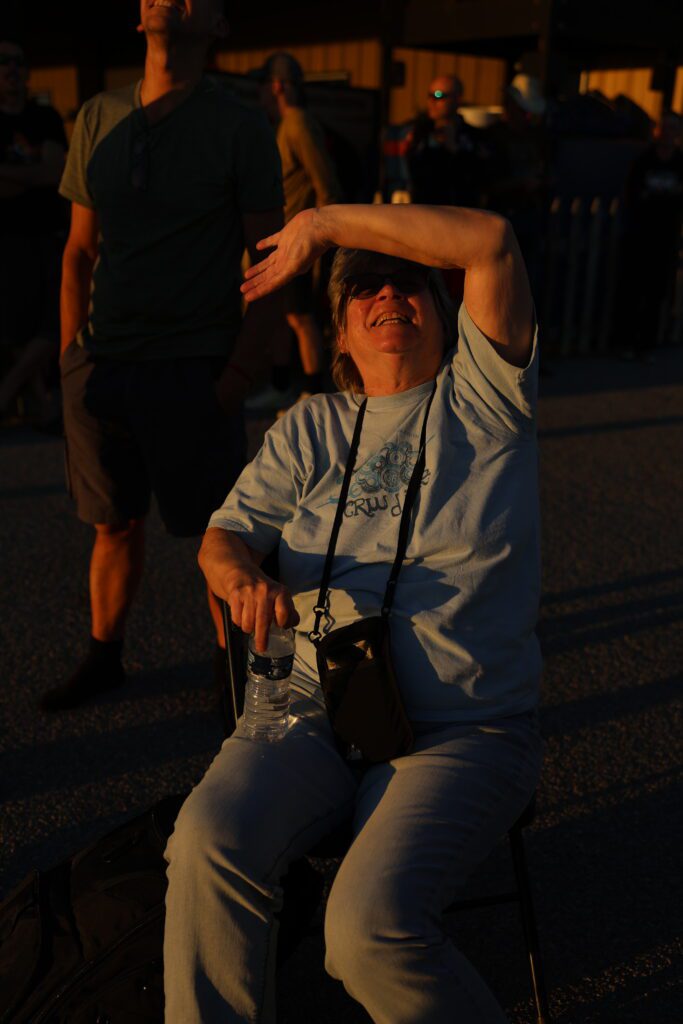 Carmen Juneau, between one base formation and the next, set a record as a female pilot for a 36-way.