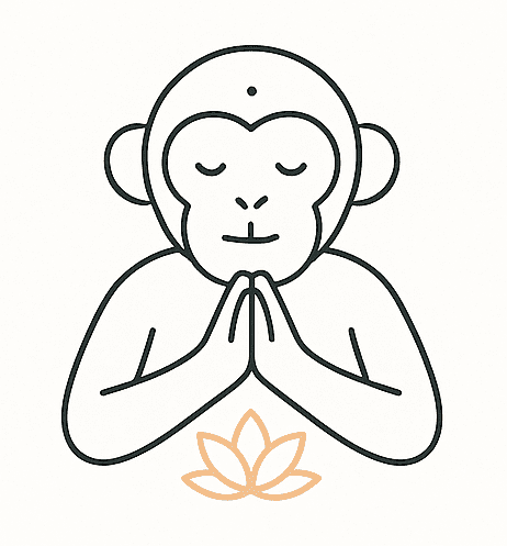 Małpa złożona w geście spokoju przypomina, że prawdziwa zmiana rodzi się z czynów.